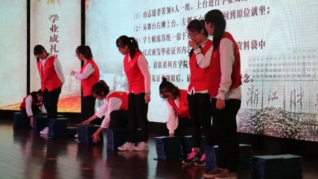 志愿者上台整理毕业证书