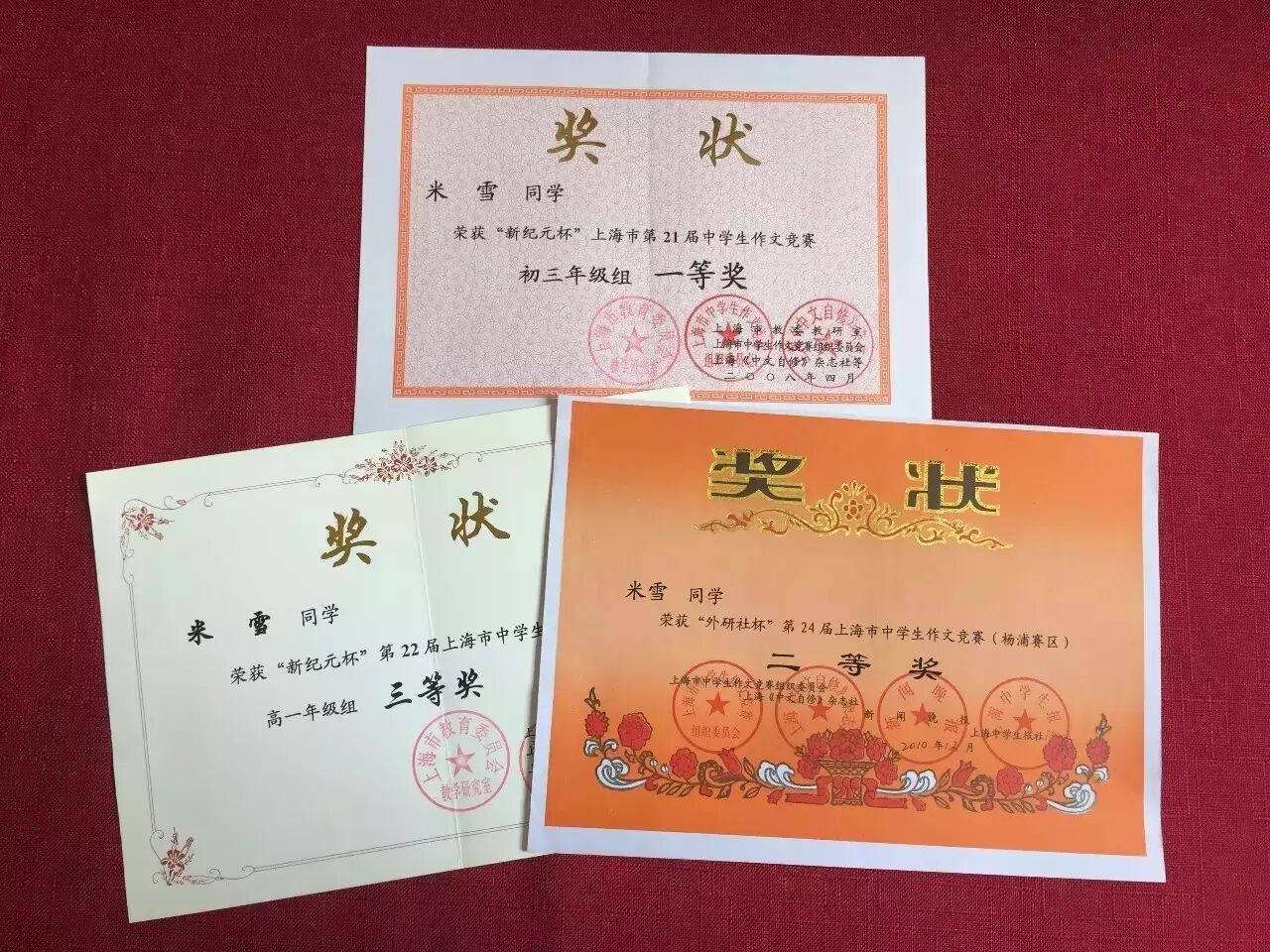 高中时,大量的阅读和交流,身边还有一群同样热爱文字的挚友,对于文字的热爱到达了一个顶峰。我们一起创办的文学社获得了上海市百佳文学社,所创刊物《心潮》直到现在还在控江校园内传播。高中陆续得了更多的作文奖项,还有幸成为了《新读写》的封面人物。那是最有力量的一段岁月,因为有梦想,因为有爱,因为在做。