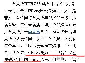 不过呢,相比古惑仔里其他四位,谢天华的绯闻略略多了一些,比如说他在夜店玩魔术时主动找女孩子搭讪,跟tvb女星拍激情戏的时候又被对方爆料到处乱摸。因为这种绯闻太多,所以香港媒体还曾经报道过说谢天华太太承受不住打击企图自杀的新闻。