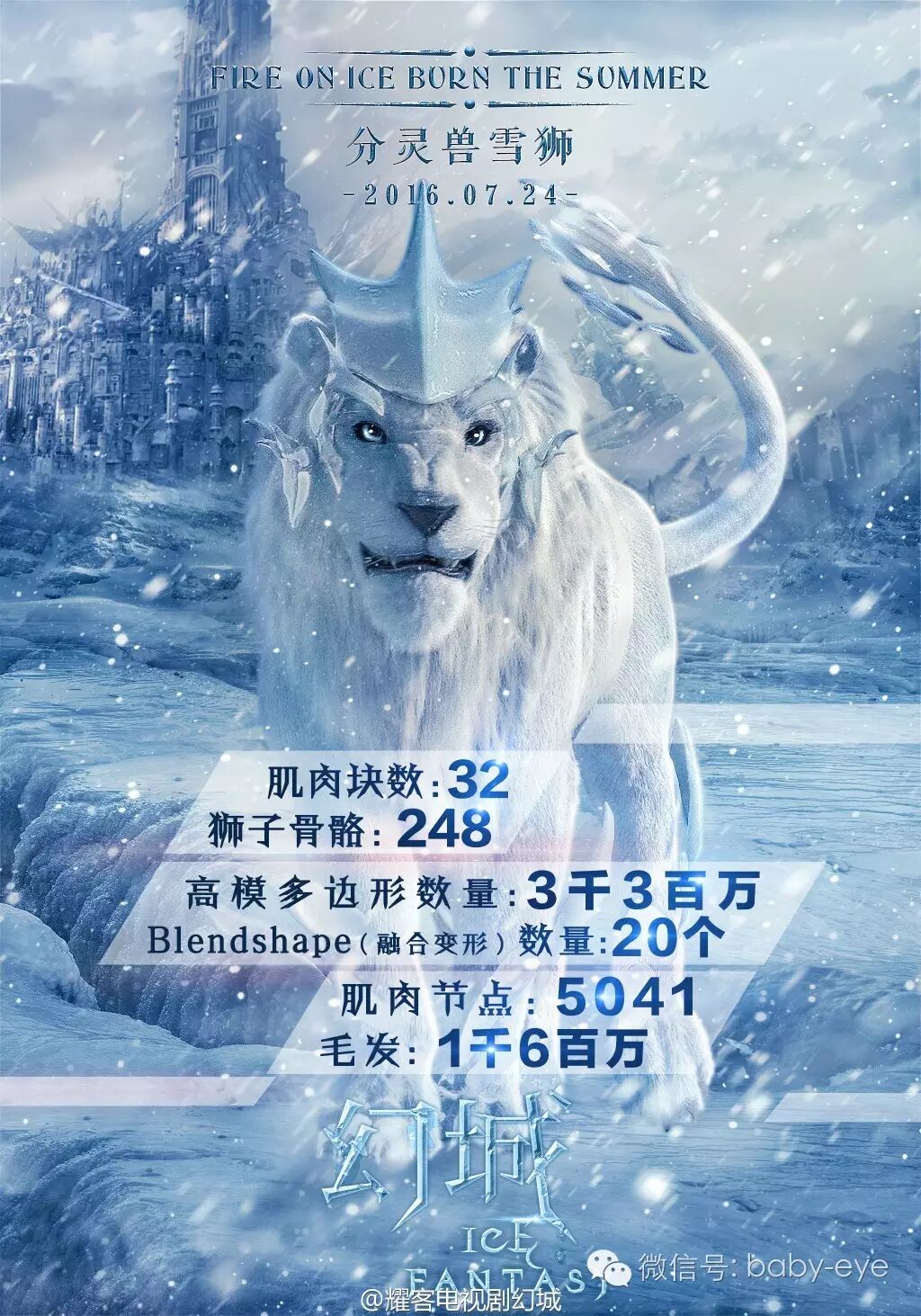 《幻城》除了超强卡司,忠诚勇猛、憨态萌动的坐骑雪狮也实力圈粉。据悉,雪狮的高模多边形用了3300万,Blendshape表情有20个,骨骼节点5041个,如此“血本”,才打造了这个有血有肉有表情可互动的全新CG角色,被盛赞“良心特效”。