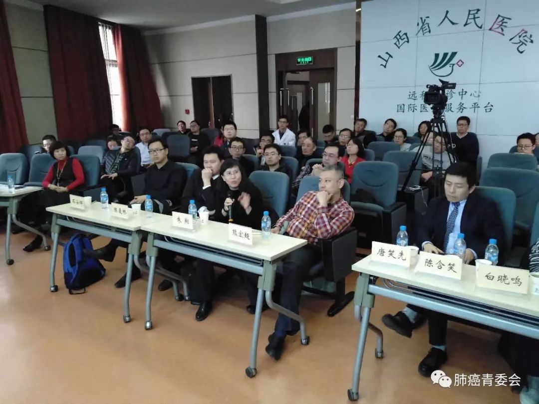 MDT谈论环节共讨论了两个病例。山西省人民医院MDT团队:病理科屈重霄主任、CT室原杰副主任医师、放疗科张晓峰主治医师、呼吸内科吴玉枝副主任医师、胸外科郝峻涛副主任医师和肺癌青委会MDT团队:北京大学肿瘤医院胸内一科赵军主任医师 、北京大学肿瘤医院影像科陈麦林副主任医师、北京大学肿瘤医院胸外一科熊宏超副主任医师、北京大学肿瘤医院放疗科石安辉副主任医师、北京大学第三医院朱翔副主任医师、北京大学肿瘤医院胸内一科陈含笑主治医师及当地医联体医生参与了讨论。