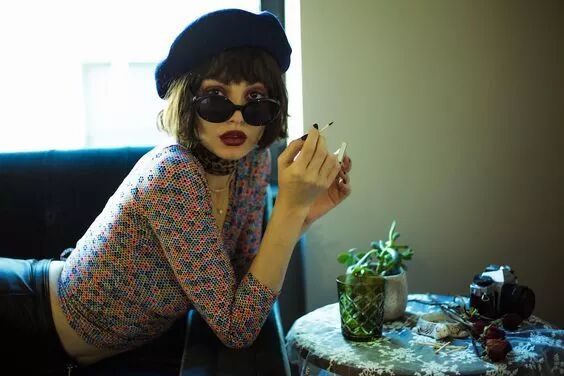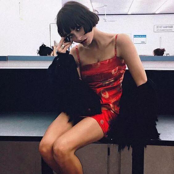 有一种复古的时髦意味,更加有“亲切感”,所以想尝试超短刘海却怕看起来会太有距离感的妹纸们可以放100个心!眉上刘海+浅眉妆+复古红唇,就是最时髦的"pin-up girl"!