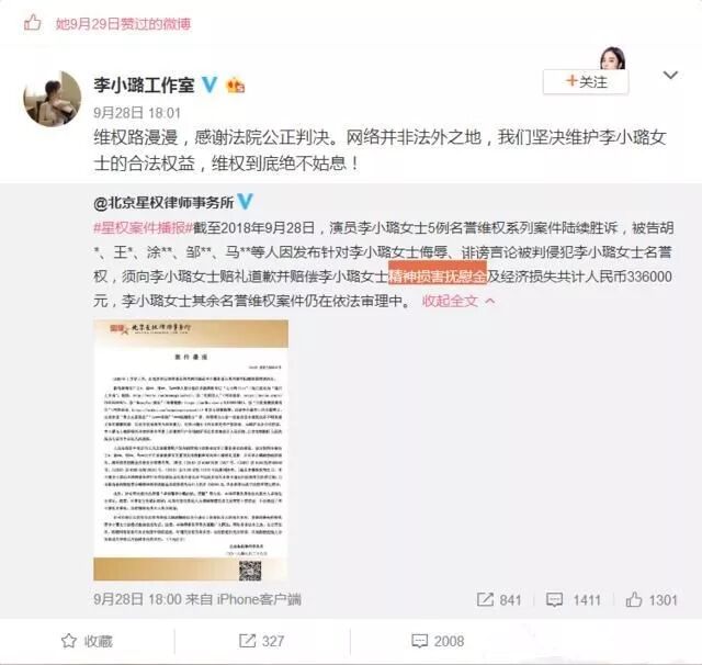 而李小璐那事情出来后,他们一家人就被推上悬崖的边上,不过在前些日子事情似乎被平息下去了,卓伟声明过那次的爆料是有所夸大喜迎眼球用的。随后对那些诽谤带有攻击性的言论进行一次打击,并获得三十多万的精神损害抚慰金。