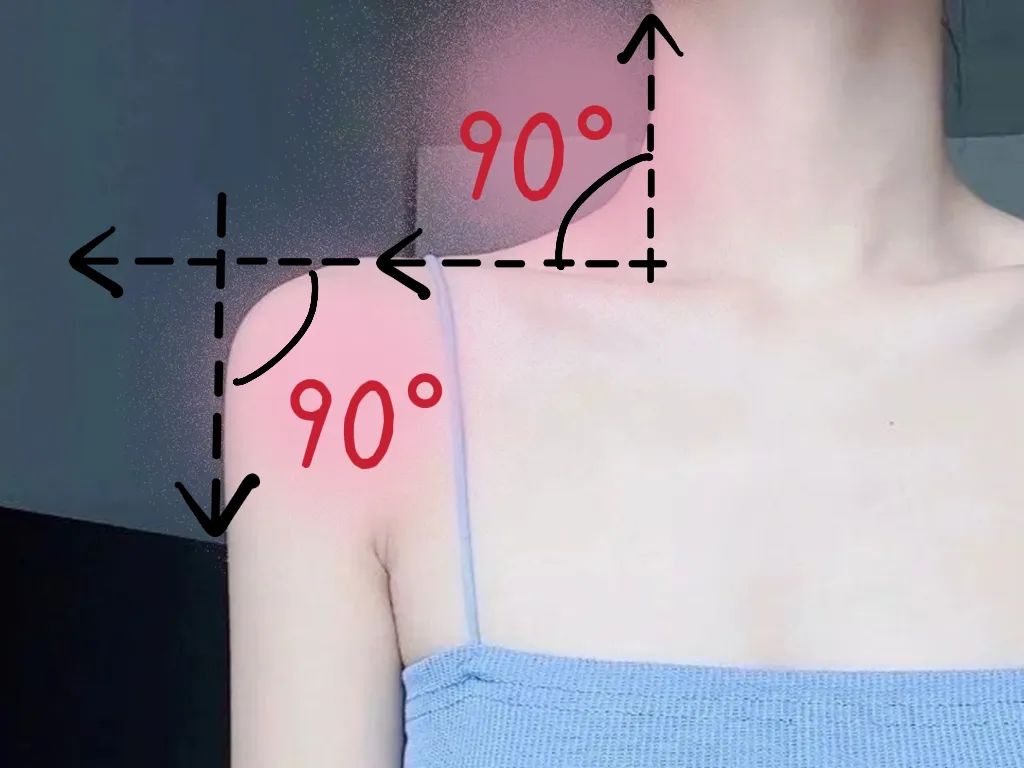 而大家追捧的直角肩,关键在于两侧肩部水平高于水平位置,即脖子衔接到肩膀的这一角度以及肩膀到大臂的角度近乎90°。