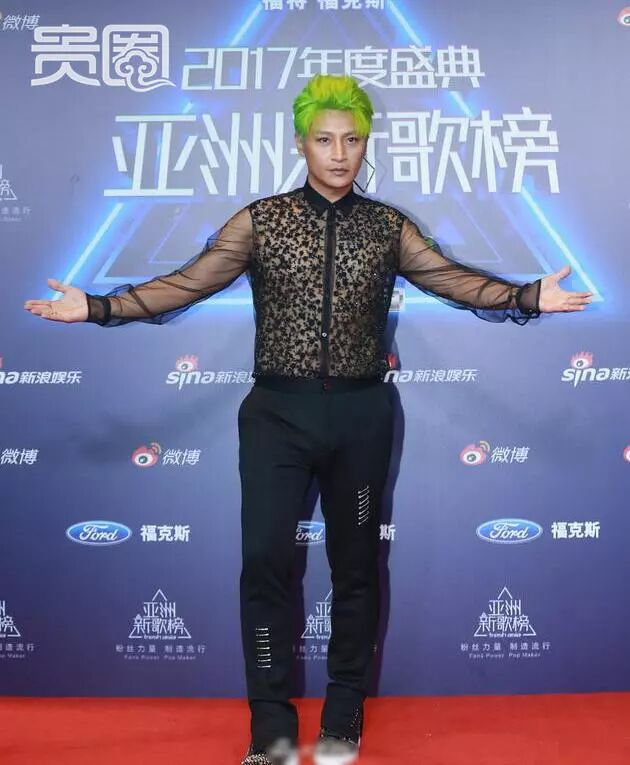 ▲陈志朋绿头发豹纹透视装