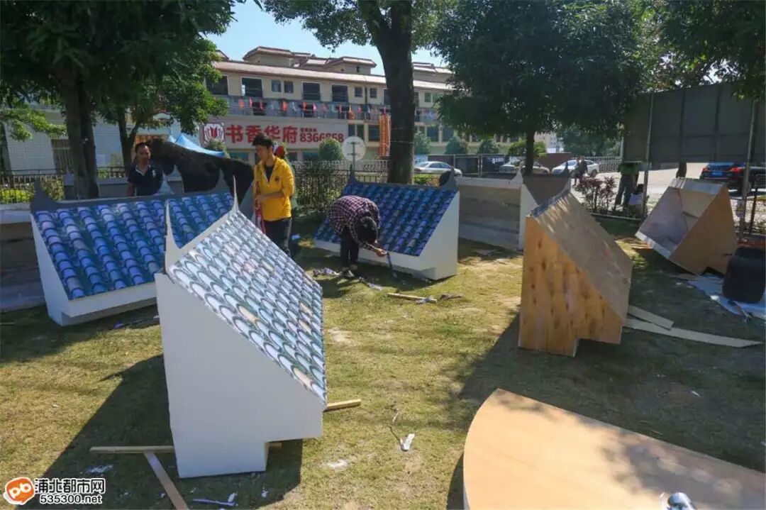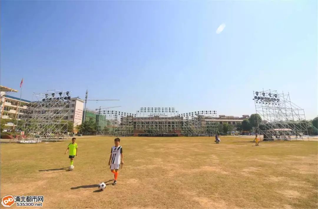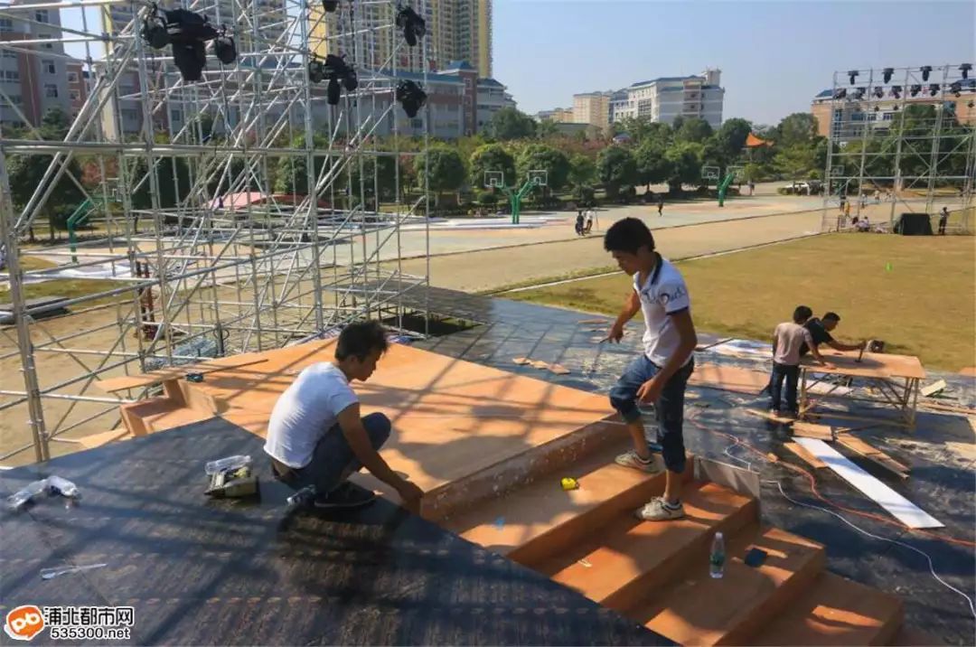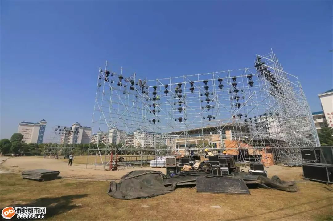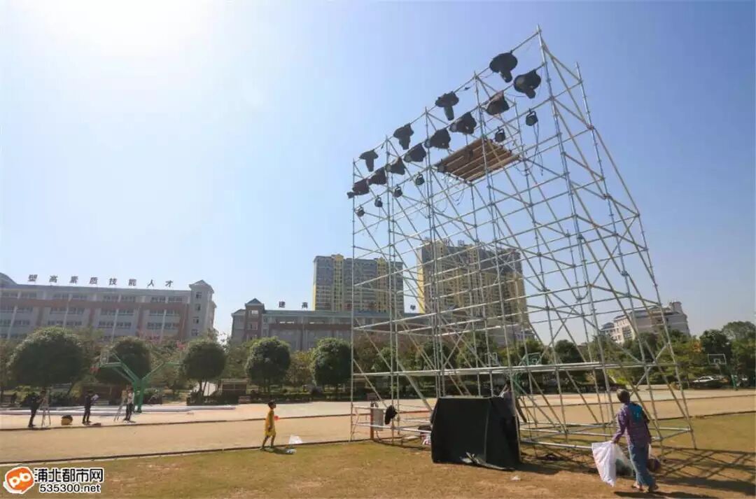 今早楼主特地去晚会现场(浦北一职校)拍了几张舞台搭建情况,