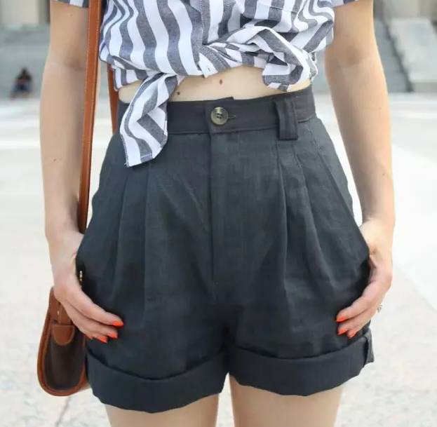 如果你有小肚腩而且臀部也不够翘,那么请自觉入一条高腰短裤。这里醒醒说的可不是平常的高腰裤哦,想要遮肚子你还需要花些心思,挑选有装饰物的款式。