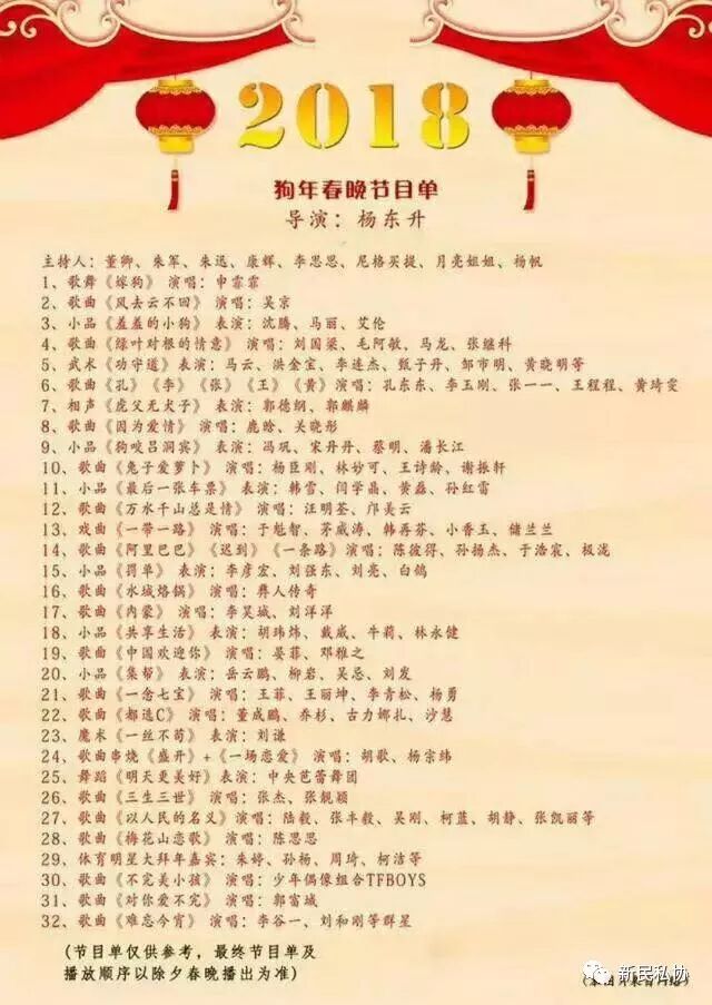 (节目单仅供参考,因为距离春晚还有一段时间,难免有更改!)