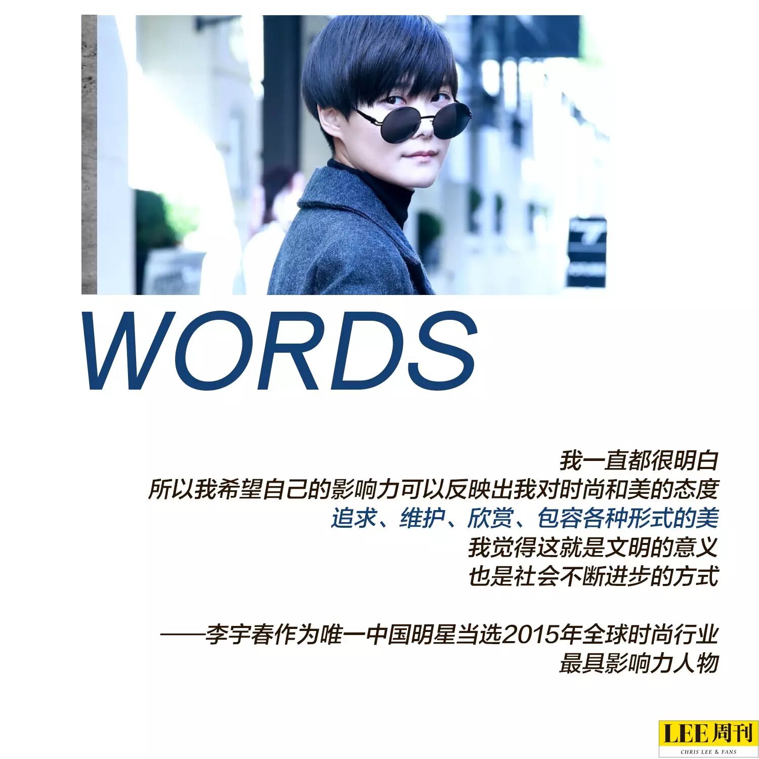 金句2015 李宇春:我是值得拥有的 LEE周刊 内地女星 2016-02-19 13:01:43 254 创作不易,用心坚持,欢迎请BaGua喝几杯爱心咖啡!打赏并支持本文 打赏并删除本文 李宇春 ▪ 金句2015宽阔如你 温润如你点击【阅读原文】下载LEE周刊新年特刊 创作不易,用心坚持,欢迎请BaGua喝几杯爱心咖啡!打赏并支持本文 打赏并删除本文 感谢您的支持鼓励,我会继续努力的!文章地址:用户邮箱:打赏金额:USDT 请输入数字点击”去打赏“,即可进行打赏支持本文章哦 李宇春 About the Author LEE周刊 功能介绍:来自腾讯微博认证资料:李宇春粉丝—LEE周刊腾讯官方微博 @李宇春-LEE周刊 官方认证:来自腾讯微博认证资料:李宇春粉丝—LEE周刊腾讯官方微博 @李宇春-LEE周刊 Related Posts 李宇春伤情曝光,乐观备战成都巡演! 2018-03-28 21:55:43 李宇春2018流行(liú xíng)巡回演唱会即将起航! 2018-02-05 21:23:36 李宇春现身机场笑容灿烂,玉米们到底说了啥? 2017-11-18 20:35:13 李宇春写给亲爱的歌迷朋友,《今天雨,可是我们在一起》正式上线! 2017-10-11 10:42:39 李宇春首次写歌给玉米:《今天雨,可是我们在一起》 2017-10-09 22:09:25 发表评论