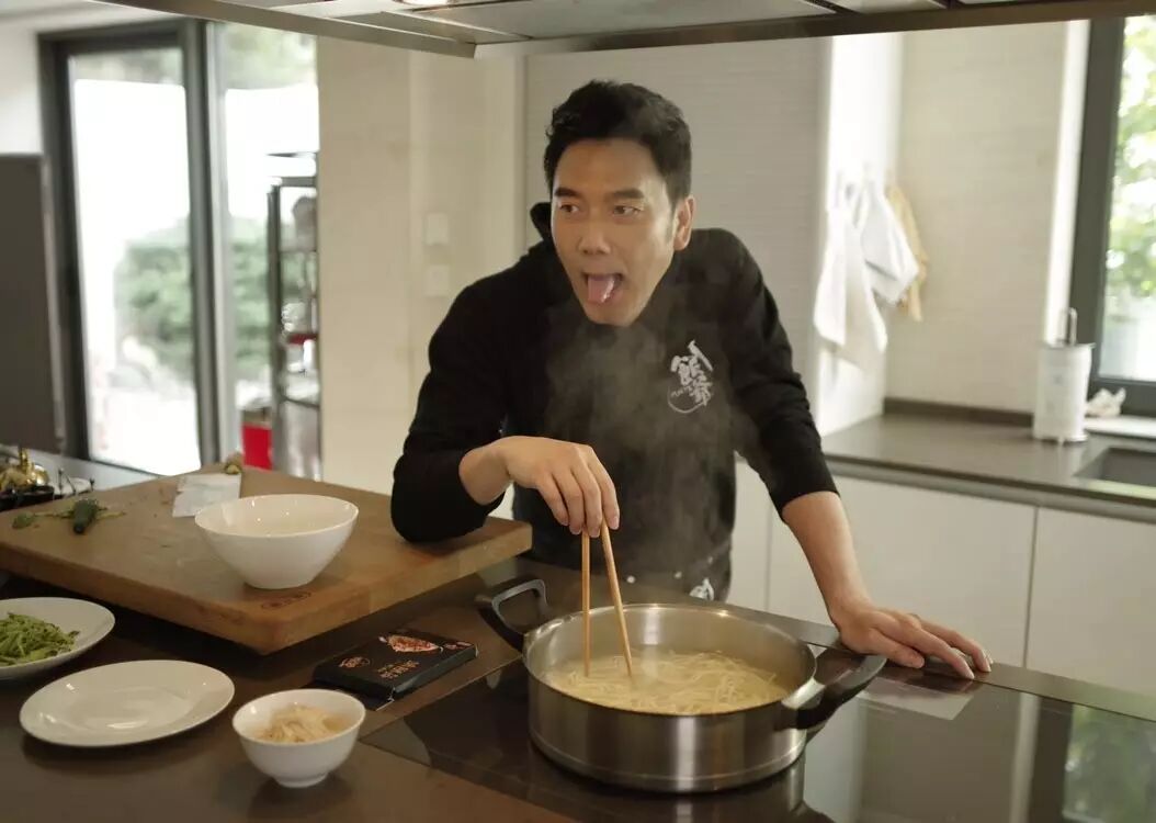 直播开始的镜头是在林依轮家做西餐的厨房。呐尼!难道他家还有专门做中餐的厨房吗?没错,依轮家就是这么壕,连厨房都有两个。他一边煮面条,一边“调戏”粉丝,说:“还好我只会做饭,如果我只会叠被子的话,难道你们要进我的睡房吗?哈哈哈!”
