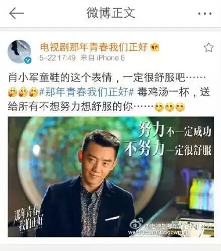 所以,《那年青春我们正好》剧组与其做这么有的没的工作,大量删减女主戏份让女二上位,还不如把精力好好钻研剧本,用心拍摄,给观众呈现出一部可以推敲又值得回味的好剧。这样不用你推销,演员也会受到观注和喜爱。
