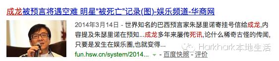 也不知媒体跟成龙到底什么仇什么怨,就算是没有传出死讯,也会有各种大哥即将遭遇不幸的预言在网络上流传。
