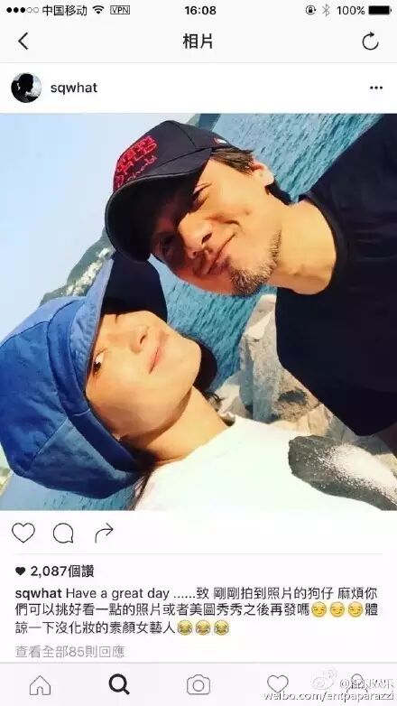 关键照片下面还配文:“Have a great day ......致刚刚拍到照片的狗仔,麻烦你们可以挑好看一点的照片,或者美图之后再发吗?体谅一下没化妆的素颜女艺人”