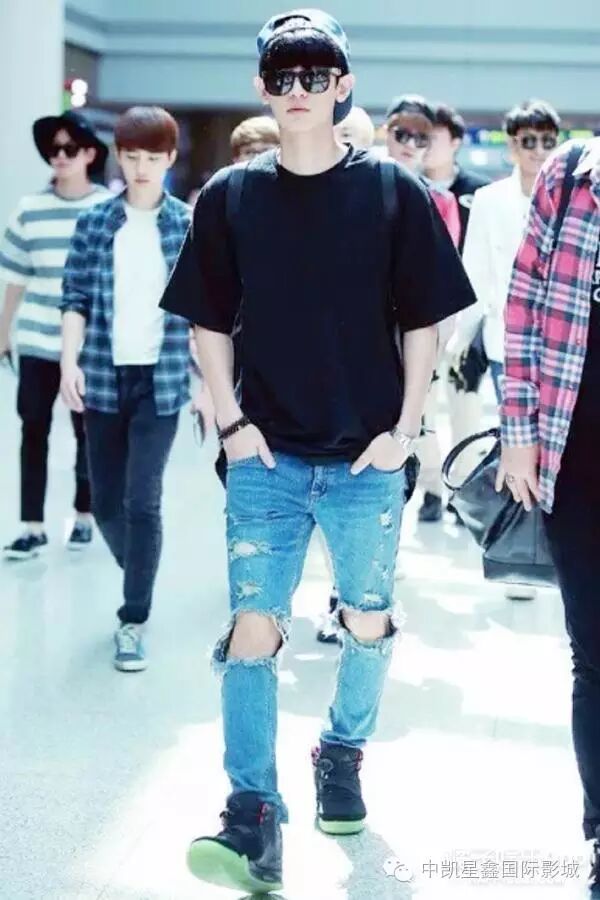 想要穿的很酷,黑白的搭配就很好,看灿烈穿上宽松的黑色衬衫和破洞裤,真是谁看谁都会爱上。