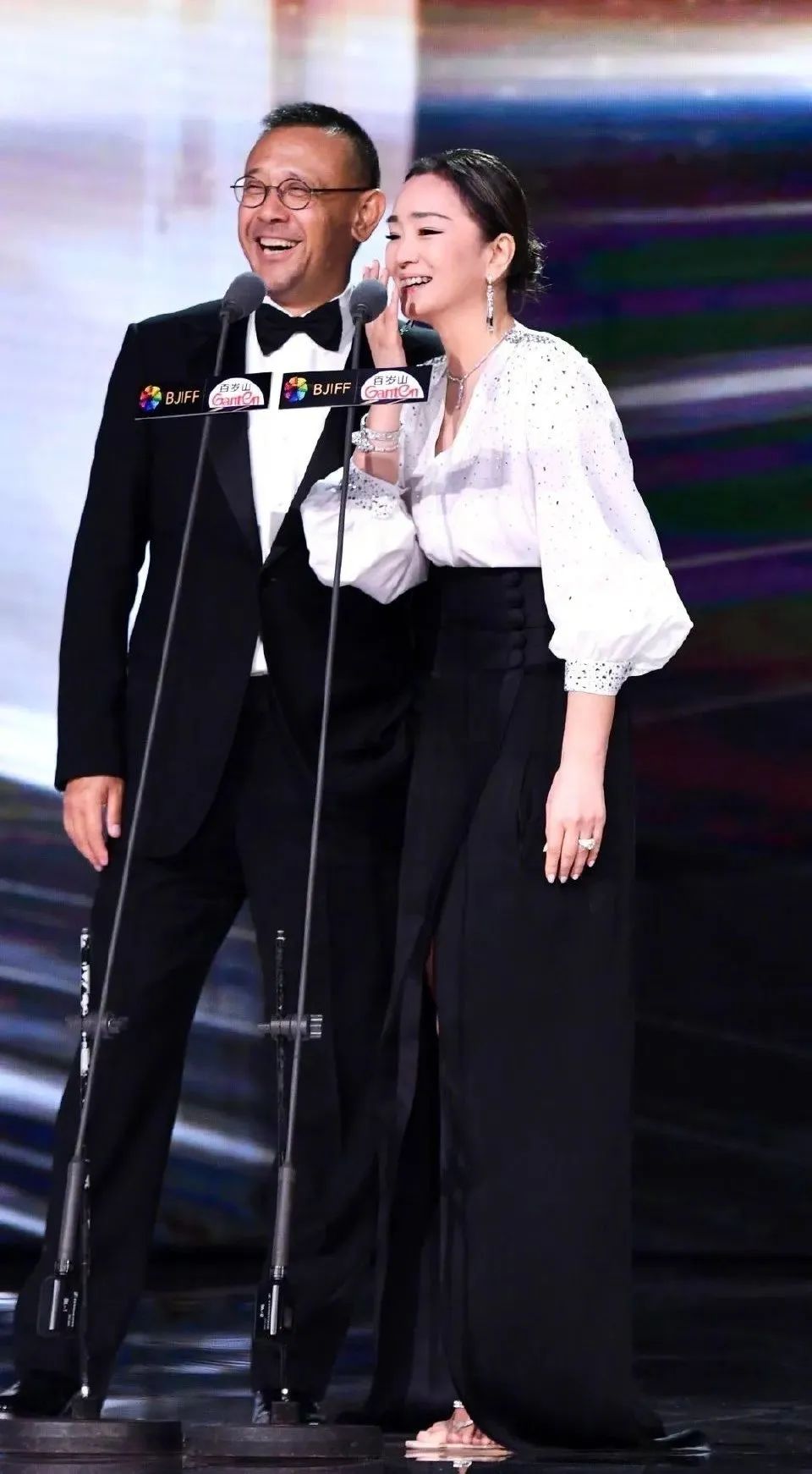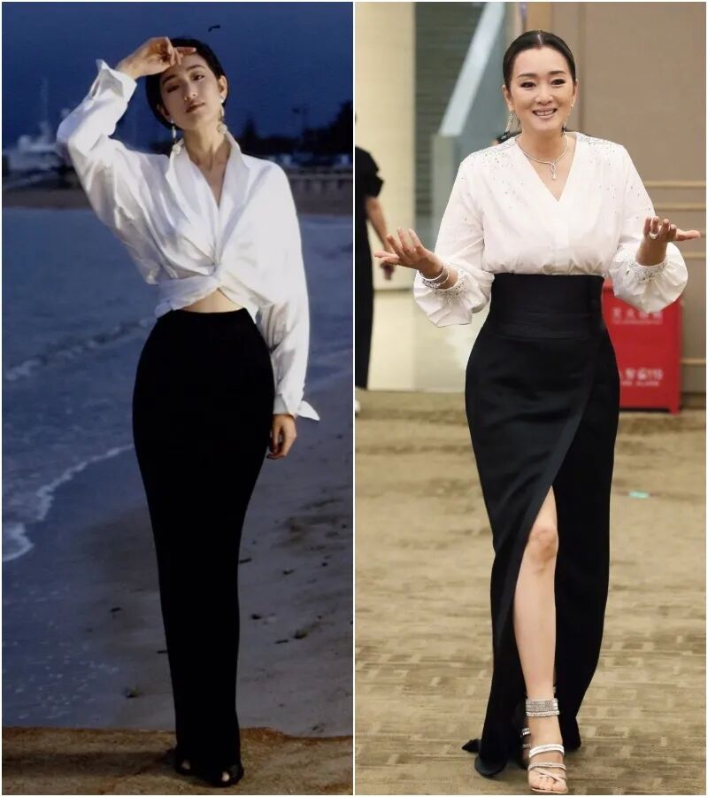 北京电影节和姜文一起上台穿的这套白衬衫黑裙子,也引发了好一波回忆杀。▼