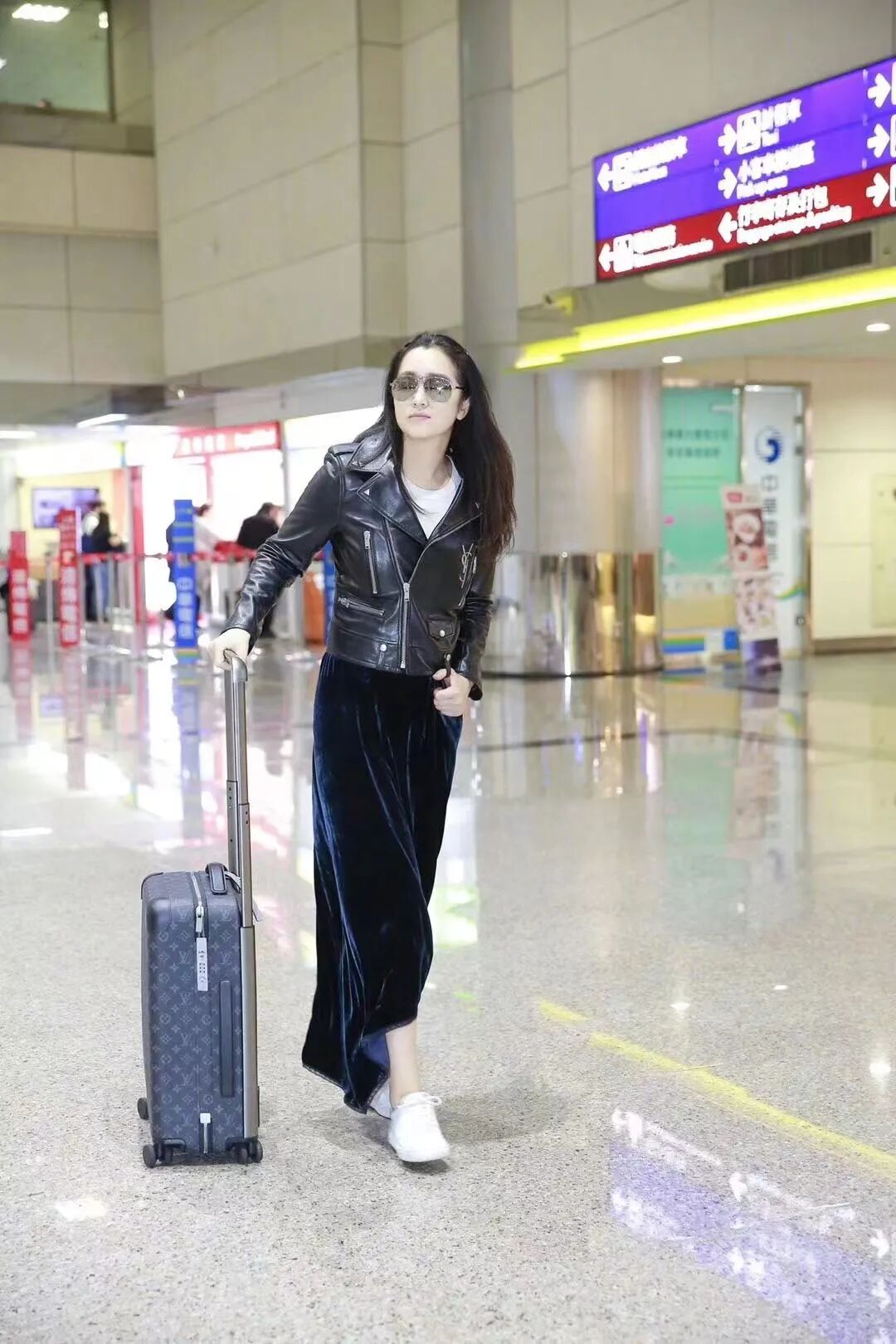 巩俐私下穿长裙,也会用皮衣去平衡。▼