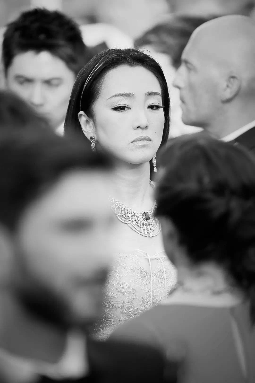 还有这种裹得紧紧的亮片上衣+鱼尾裙的设计,很多大胸唯恐避之不及。但巩俐很喜欢穿,穿起来也很有曲线美。▼