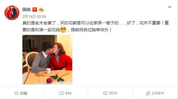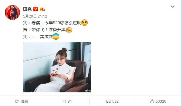 接着我就去刷了刷田亮微博,少女心被炸起,一不小心就塞了把狗粮: