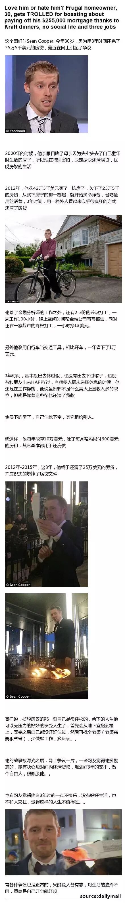 一个为了摆脱房奴身份,拼劲全力3年还完房贷的哥们,他的这种生活方式在网上引起争议。。