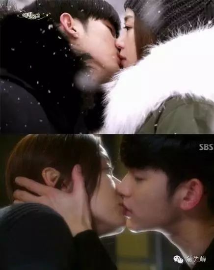 然后,《来自星星你》吻戏。另一个男神女神搭档的剧集同样也是吻得很虐狗,这30秒撩男神的片段也是剧中的著名梗。