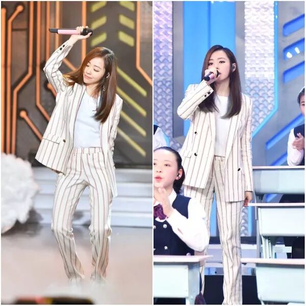 女强人最爱的衬衫配阔腿裤也很适合张靓颖,看起来干练又有范。