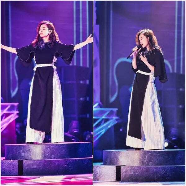 解构主义的不对称长裙在凸显张靓颖好身材的同时又让整个人多了几分性感。