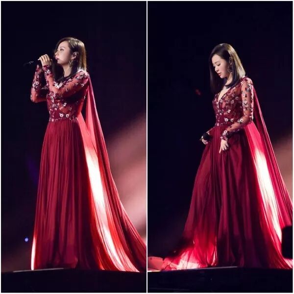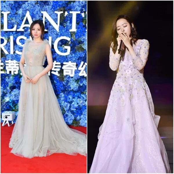 下面这种拖地的大摆纱裙张靓颖穿也很好看,上面是女神,现在是公主。