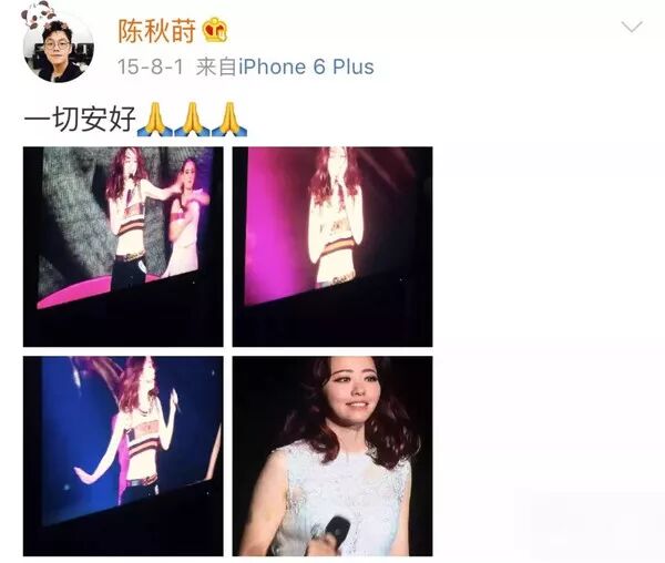 陈秋莳在事发当天也发了一条“一切安好”的报平安博。