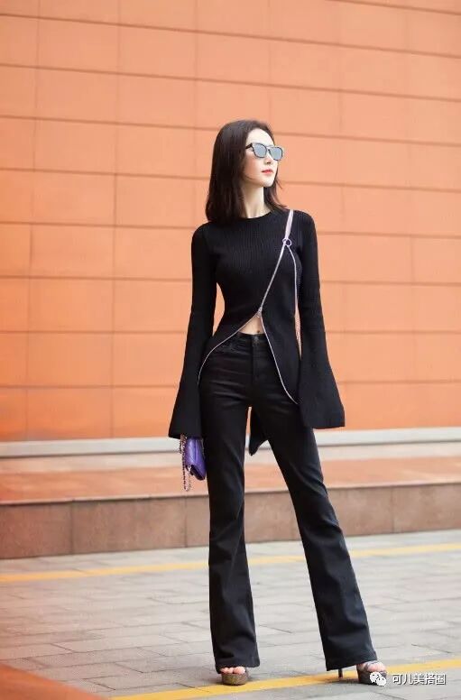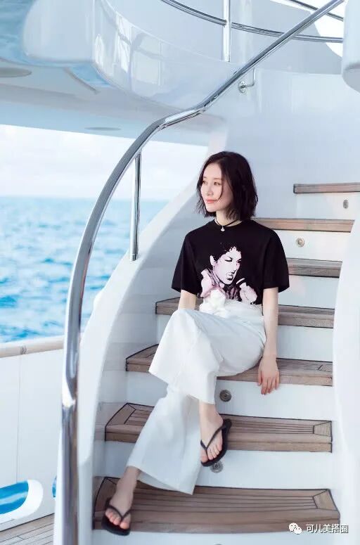 再看看这一张,一件简单的黑色图案T恤,下身是一条白色的阔腿裤,非常小年轻的穿搭,休闲又好看。黑与白的结合,看起来非常的舒服大方,高腰的裤子会显得腿部更加修长,整个人比例会好看很多。这样的舒畅看上去就像是一个小女生一样,非常青春活力,简单却又不显得单调,很合适。