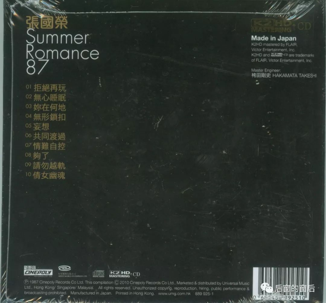 《Summer Romance’87》则由里到外都重塑了一个全新的张国荣。比之前在“华星唱片”时期以黎小田慢歌和翻唱日本劲歌两条腿走路更进步的是,这一次“新艺宝”干脆将整张专辑都送到了比香港更趋向国际化的日本,不仅唱片封套摄影邀请了日本摄影师Nouharu Kondo在东京完成,从而为张国荣梳理出一个更时尚、儒成熟的新男人形象;同时还在部分曲目中直接邀请日本音乐人制作编曲,以营造出更国际趣味的音乐潮流;而整张专辑的录音亦在日本完成,对于这一点,尤其是在和“华星唱片”时期的作品参照后就能明显感觉,国际化的录音水准,不仅让张国荣彻底告别之前尚存的七十年代末那种港乐的乡土味,也最大限度释放出他声线中横向时宽厚、磁性的特色。