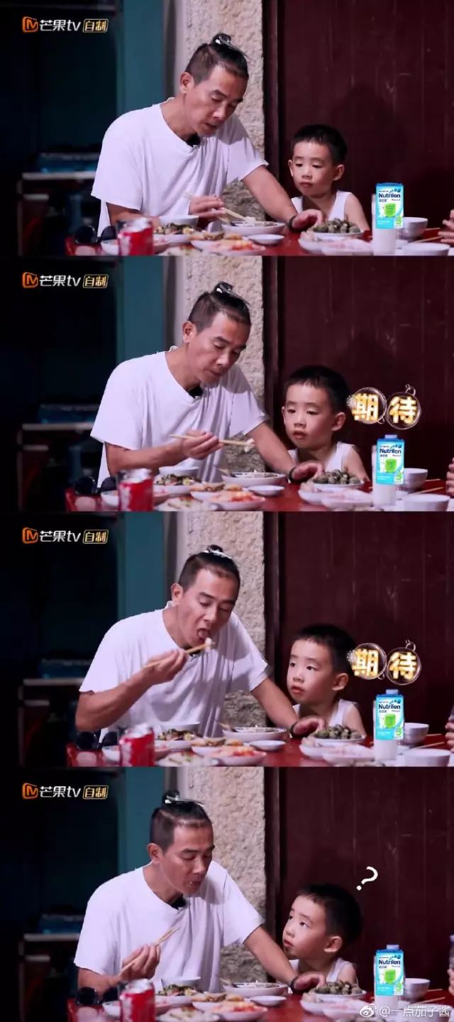 忙活了一天,爸爸和孩子们终于吃上了第一顿饭。其他爸爸都照顾宝贝先吃,陈小春就在jasper的注视下把一块鱼肉送到自己嘴里。