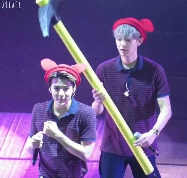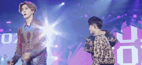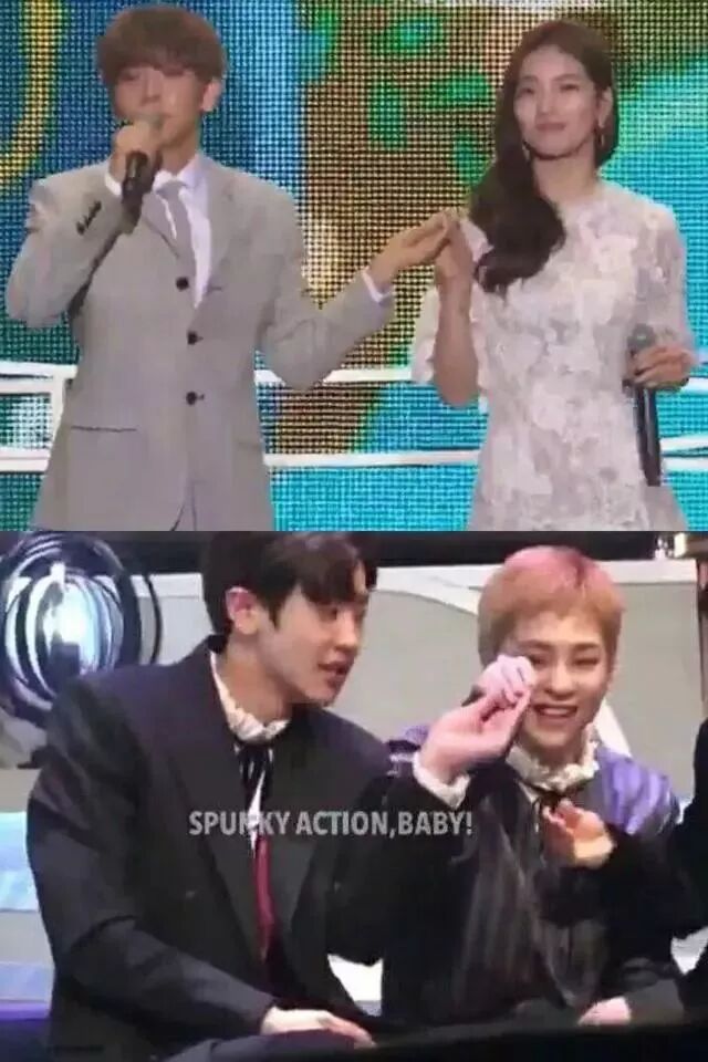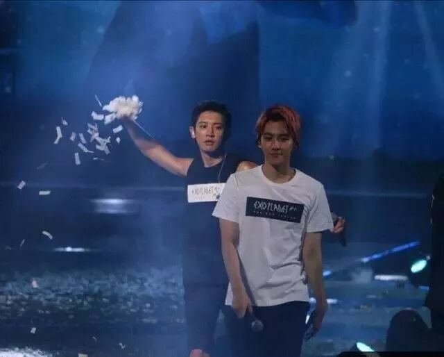 不安分的灿烈还要在台下拉着XIUMIN的手模仿