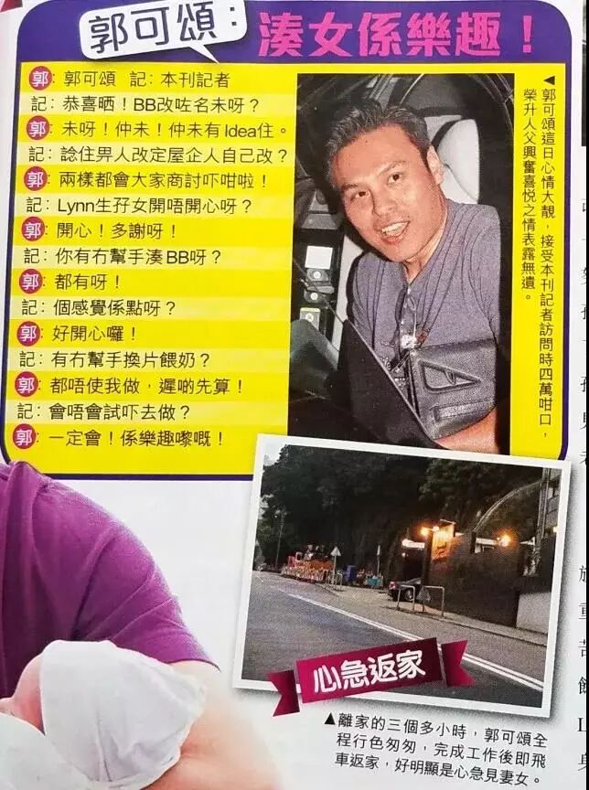 升级奶爸第三天,港媒就采访了郭可颂,他一脸兴奋满足,并告诉记者会用心参与到带娃中去,学习给宝宝换纸尿裤,因为这是当爸爸的乐趣。