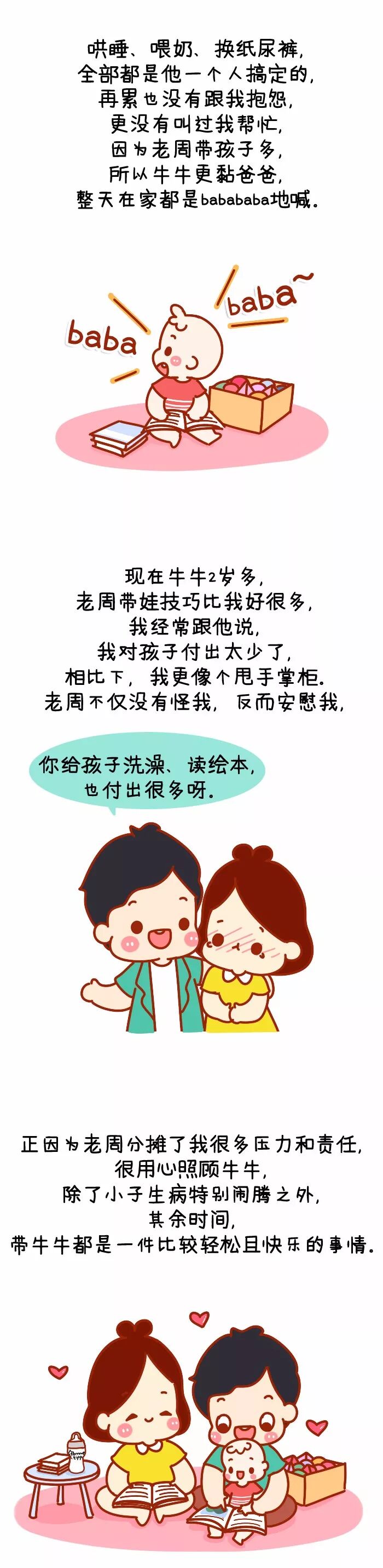 有了孩子后,要用大量的时间和精力,去照顾宝宝的吃喝拉撒。宝宝高需求时期,也是妈妈最需要帮助的时候,如果爸爸能帮忙带一下娃,减轻妈妈的负担,让妈妈能更好的恢复产后身体,这样孕育一个小生命再辛苦,也会变成一件轻松快乐的事情。