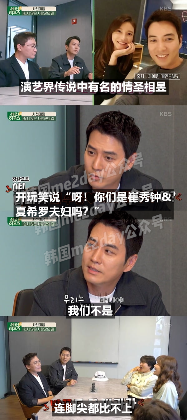 其实朱相昱和妻子车艺莲也是韩国演艺界的代表恩爱夫妇,他透露道每次和妻子去打高尔夫都会被人调侃“呀!你们是崔秀钟&夏希罗夫妇吗?”,但这次见到崔秀钟&夏希罗夫妇真人后才发现,自己连他们的脚尖都比不上。