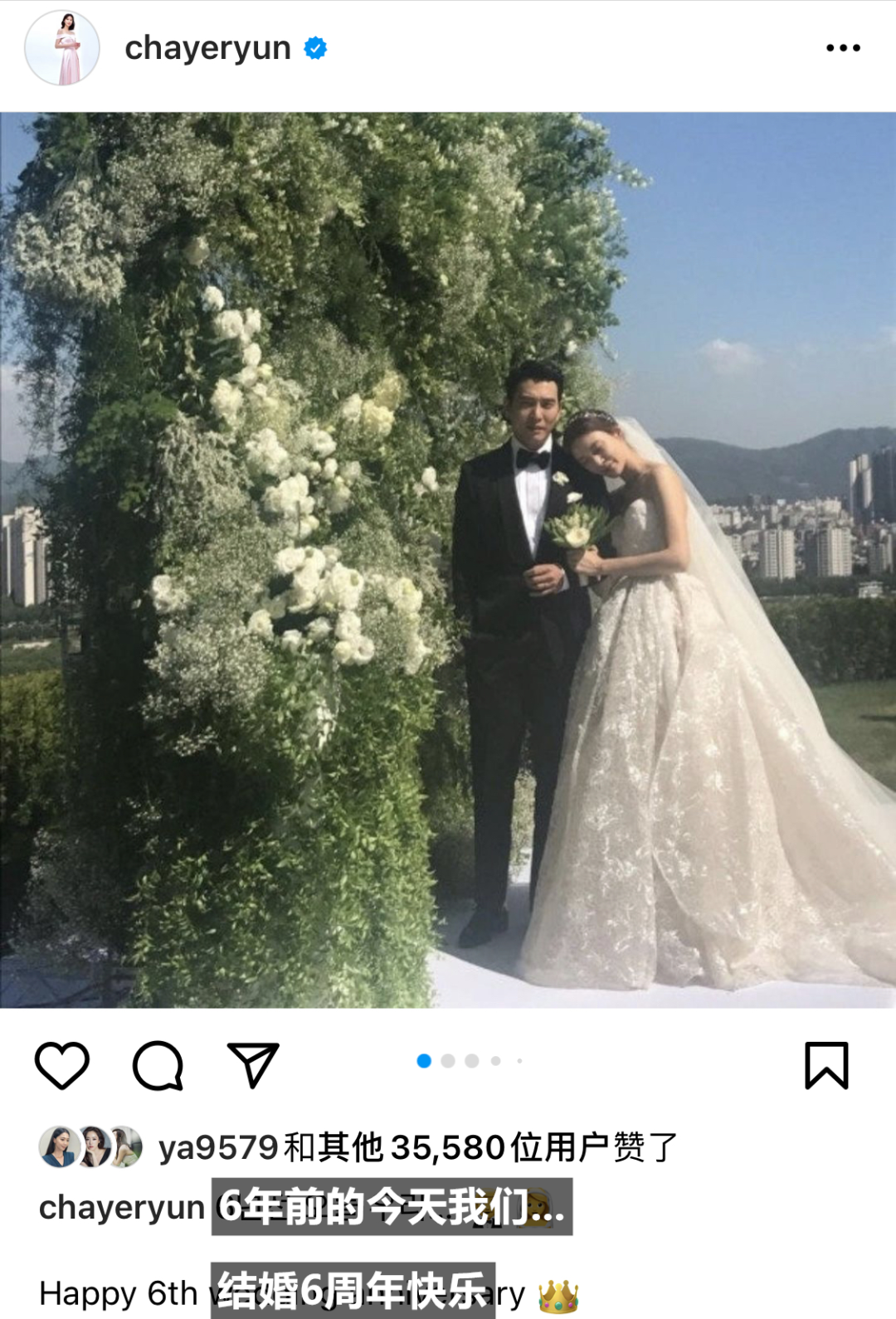 今年5月25日两人迎来了结婚6周年,车艺莲还晒出婚礼时的照片庆祝纪念日。
