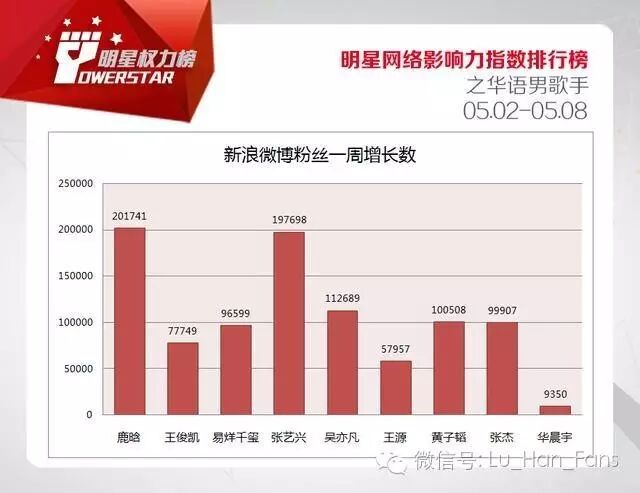 华语男歌手TOP10 我们一起来看看最新的排名: 【#明星网络影响力指数排行榜#】第六十三期榜单之华语男歌手Top10: 总的来说咱们的鹿晗还是很厉害的,谢谢所有鹿饭的支持,我相信鹿晗也会继续努力,取得更好的成绩.... 感谢大家对一鹿相随的支持,您的支持就是我们的动力,我们每天都会报道鹿晗的最新的内容,让大家和鹿晗一鹿相随!!!