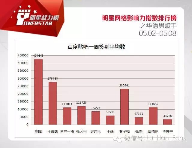 百度指数、媒体报道量、贴吧活跃度、贴吧签到数第一:鹿晗