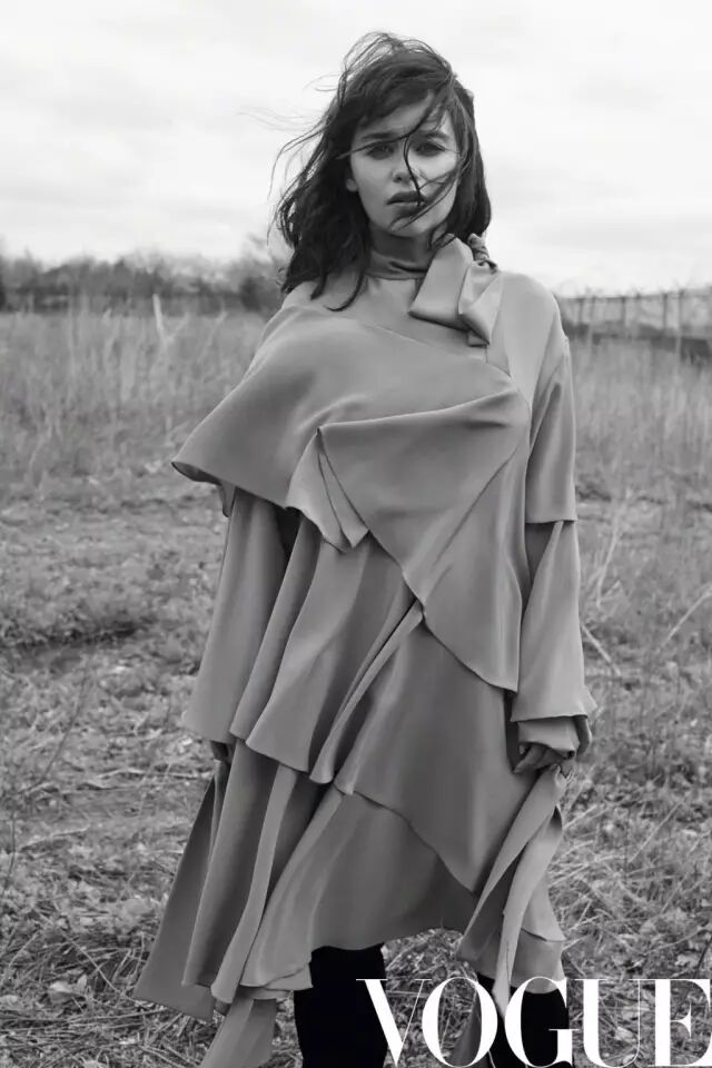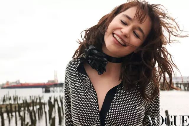 “我仿佛天生就认为我会成为一名演员。”女星Emilia Clarke此时坐在一把塑料折叠椅上,穿着舒适的蓝色宽松毛衣和紧身牛仔裤,光着脚,椅子下面是一双白色Prada高跟鞋,正为本期《Vogue服饰与美容》封面拍摄准备妆发美甲。