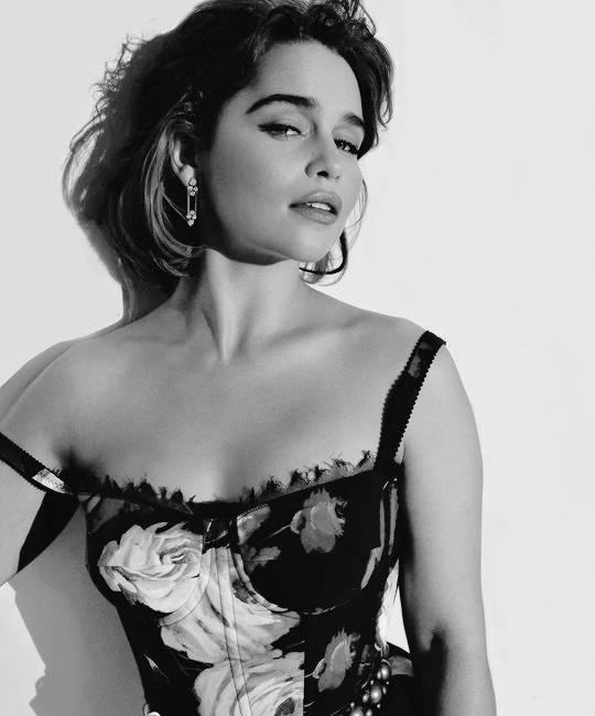不难发现,和Emilia相处一段时间就会很快感受到如家人般亲切。就连她的Instagram账号也散发着温暖和幽默感——她会在上面贴出各种自拍、她对嘴型跟唱流行歌曲的视频以及她和演员同事的快照。“很难得有机会与正在看你作品的人直接对话,”她谈到自己对社交媒体的热爱,“仅仅说出‘这是我想说的,这是我的感受’就十分有趣、温馨。”