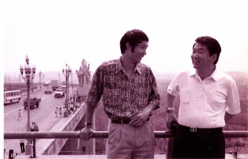 1993年6月,刘小光在第6届中日天元对抗赛上战胜林海峰,两人在南京长江大桥上欢谈。