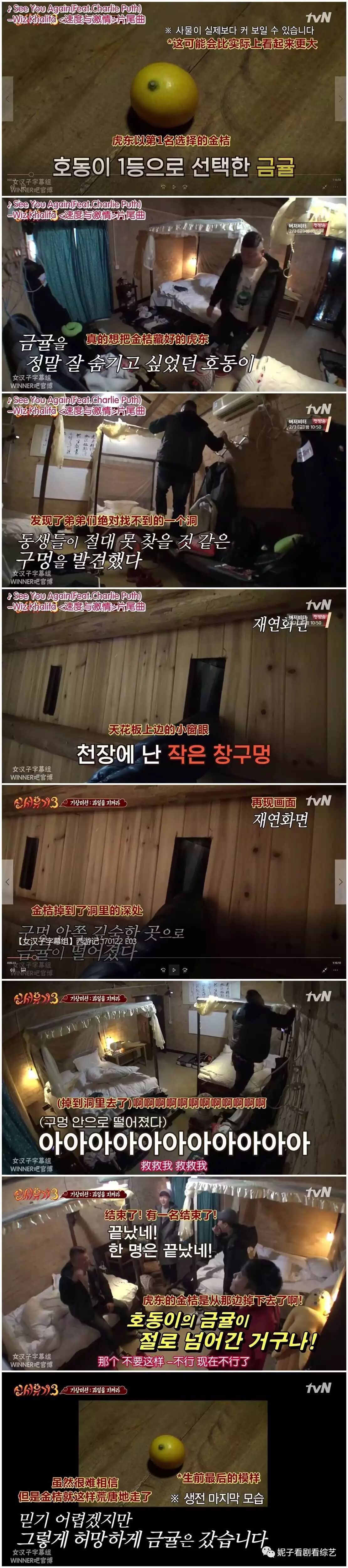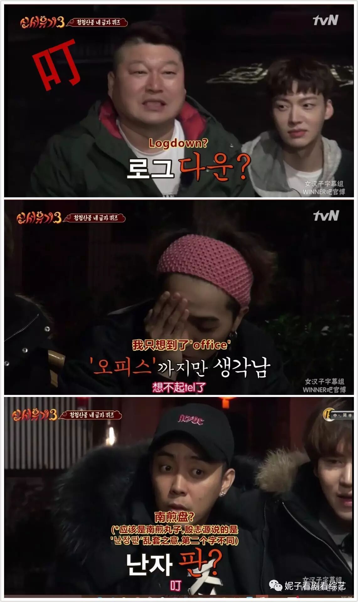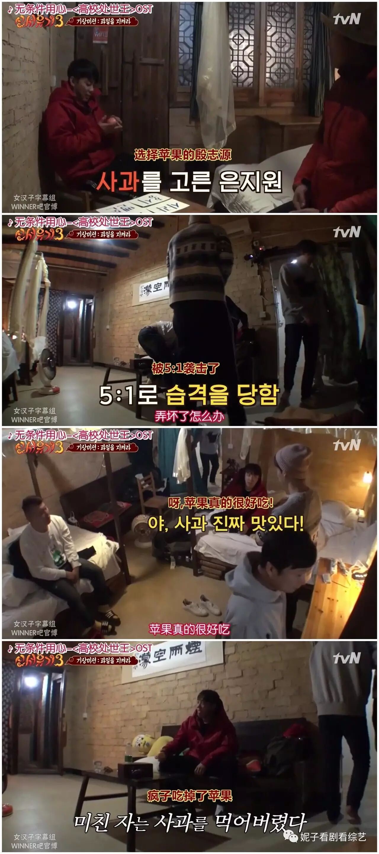 而我们的节目组也是任性又可爱。比如咱们罗PD(罗PD真的是我知道的最爱上镜的PD,哈哈)总爱和妖怪们打赌。出发前最后的一次见面,原本是打算去德克萨斯农庄做适应性训练,道具都布置好了。然而当妖怪们聚在李作家办公室吃完拉面,休整准备出发的时候,虎东拿起棒球杆颠球找乐。PD随即提出打赌,如果宰贤、圭贤和闵浩三个合计颠球20个以上,则结束拍摄并给零花钱,失败则按原计划进行,且成员要全部入水。结果PD认为只能颠4个球的圭贤一个人拍了47个球。于是妖怪们high了,罗PD懵了,作家“愤怒”地抓起了罗PD的衣服。