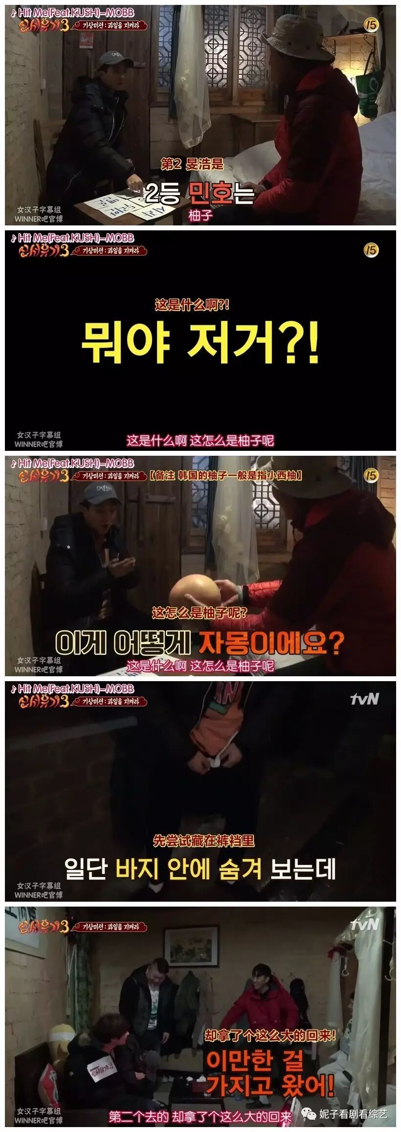而第二个选择的宋闵浩,以为中国的柚子和韩国的小西柚一般大小,自信满满地选择了袖子,待看到实物后,傻了眼。