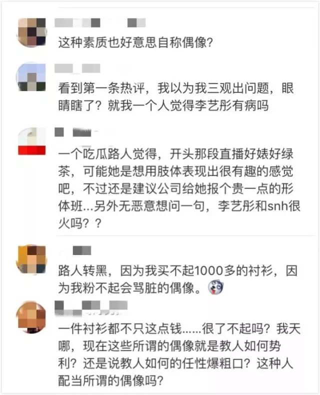 再加上直播骂粉丝事件一出,网友纷纷路转黑,对李艺彤身为偶像,不但不爱惜粉丝对她的喜爱,还口出狂言,公然辱骂粉丝,不配做明星。