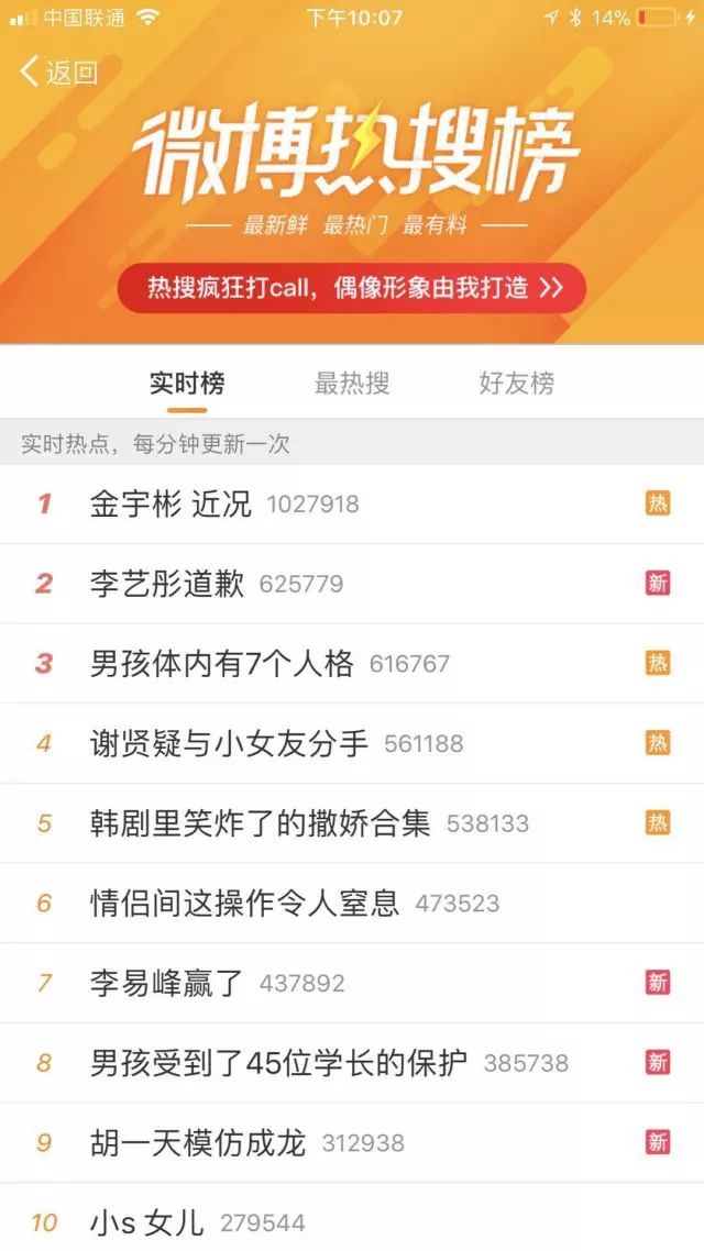 在爱奇艺娱乐“奇迹的诞生日”李艺彤生日会上的后半部分,李艺彤唱完一首《丘比特的失误》之后,李艺彤异常诚恳的对前段时间发生的事做了道歉,还火速登上了热搜榜。