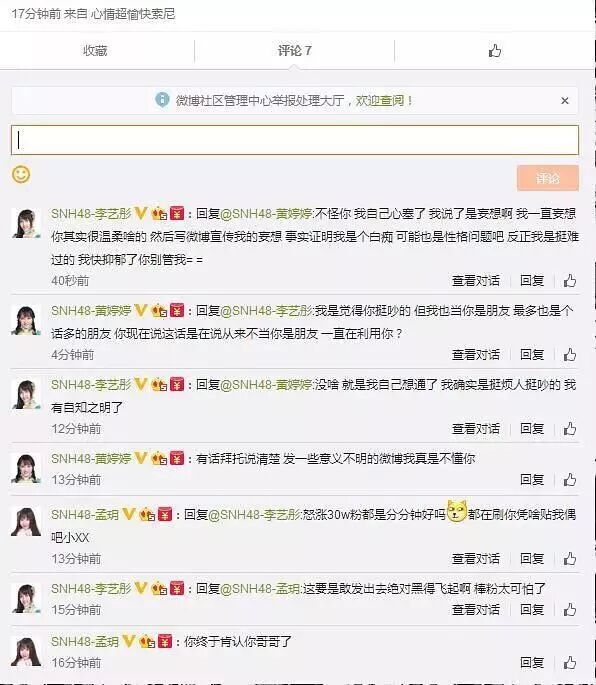 各种舆论指责李艺彤的声音也越来越多,12月21号,SNH48冯薪朵和黄婷婷为此还宣布辞去违章职务。