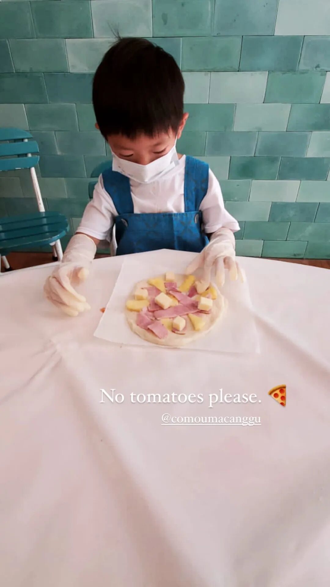 她还带着儿子一起去做披萨,没想到3岁的儿子长得也太高了,完全是遗传到乐基儿完美的基因,而且小朋友非常的可爱,一个人坐在一旁很专注,虽然戴着口罩,但是也能感觉到颜值很高。
