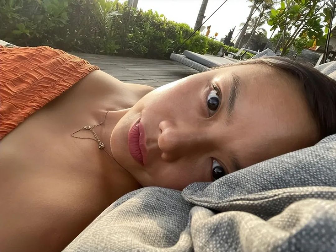 乐基儿慵懒地躺在室外的躺椅上,还不忘来一张自拍,一双大大的双眼,非常有神,她身着橘色的抹胸,健康的肤色太吸睛了,脖子上的项链也特别抢镜,这照片完全就是素颜出镜,应该是没有化妆了,不得不说,这个气质的确是让人佩服,好歹以前也是天王嫂,还是有一定的实力。