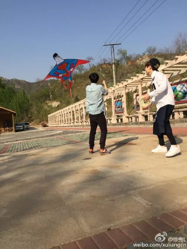 一起放风筝。