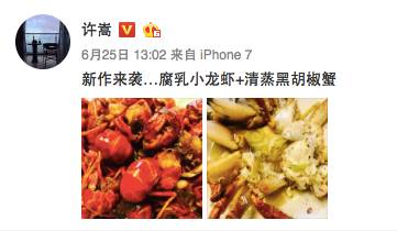 不过最近他好像没什么新的作品,现在的微博就是晒一些自己做的美食。